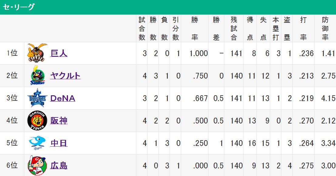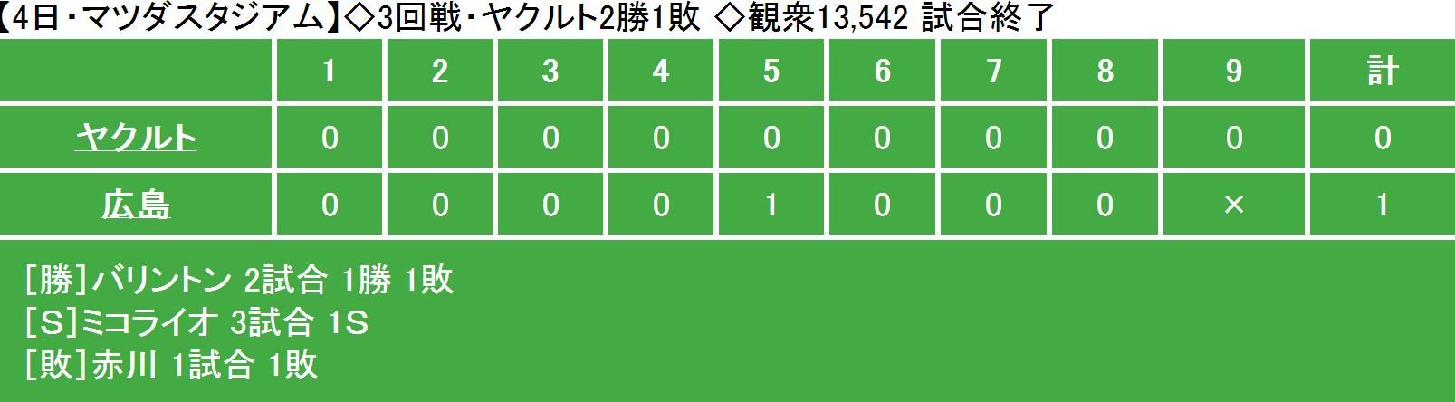 ヤクルト 0 0 0 0 0 0 0 0 0 0