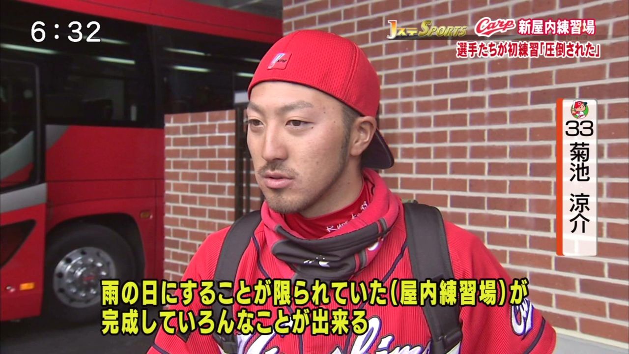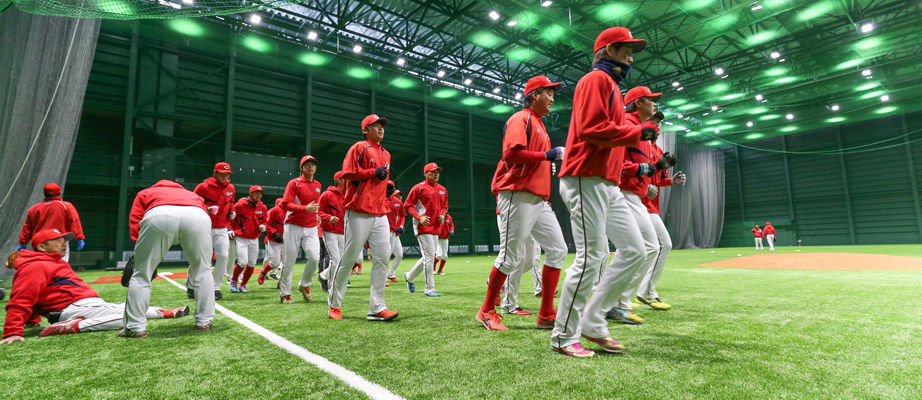 マツダスタジアムに隣接する新屋内練習場が5日、稼働し、広島ナインはフリー打撃や投内連係、サインプレーの確認を行った。総工費10億円。45メートル四方の人工芝グラウンドの新施設。梵は「人工芝は他の球場と同じもので練習になる」と述べ、選手会長としては「足らない部分があれば訴えていきたい」と続けた。菊池は「雨の日にできなかった練習ができるようになる」と喜んだ。