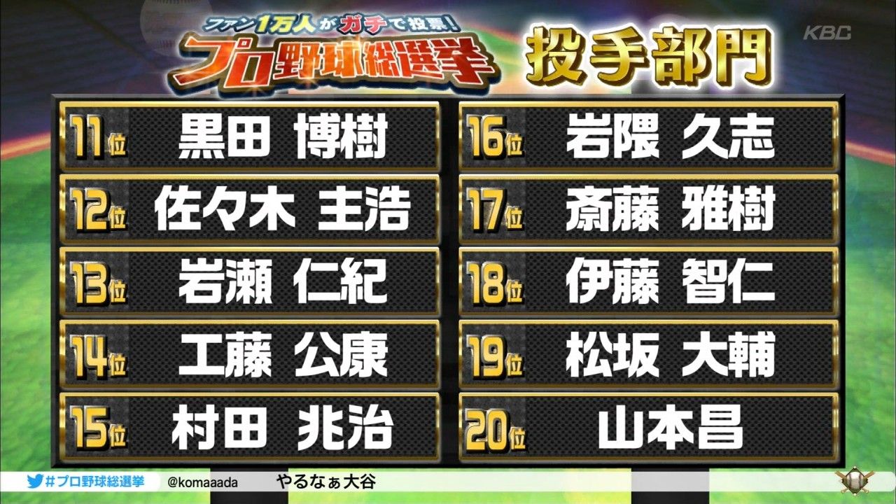 投手も20位からやってほしかったなあ