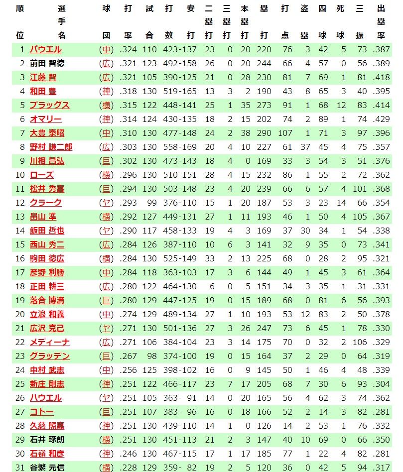 (注:出塁率、長打率、OPSはWikipediaの方を採用)