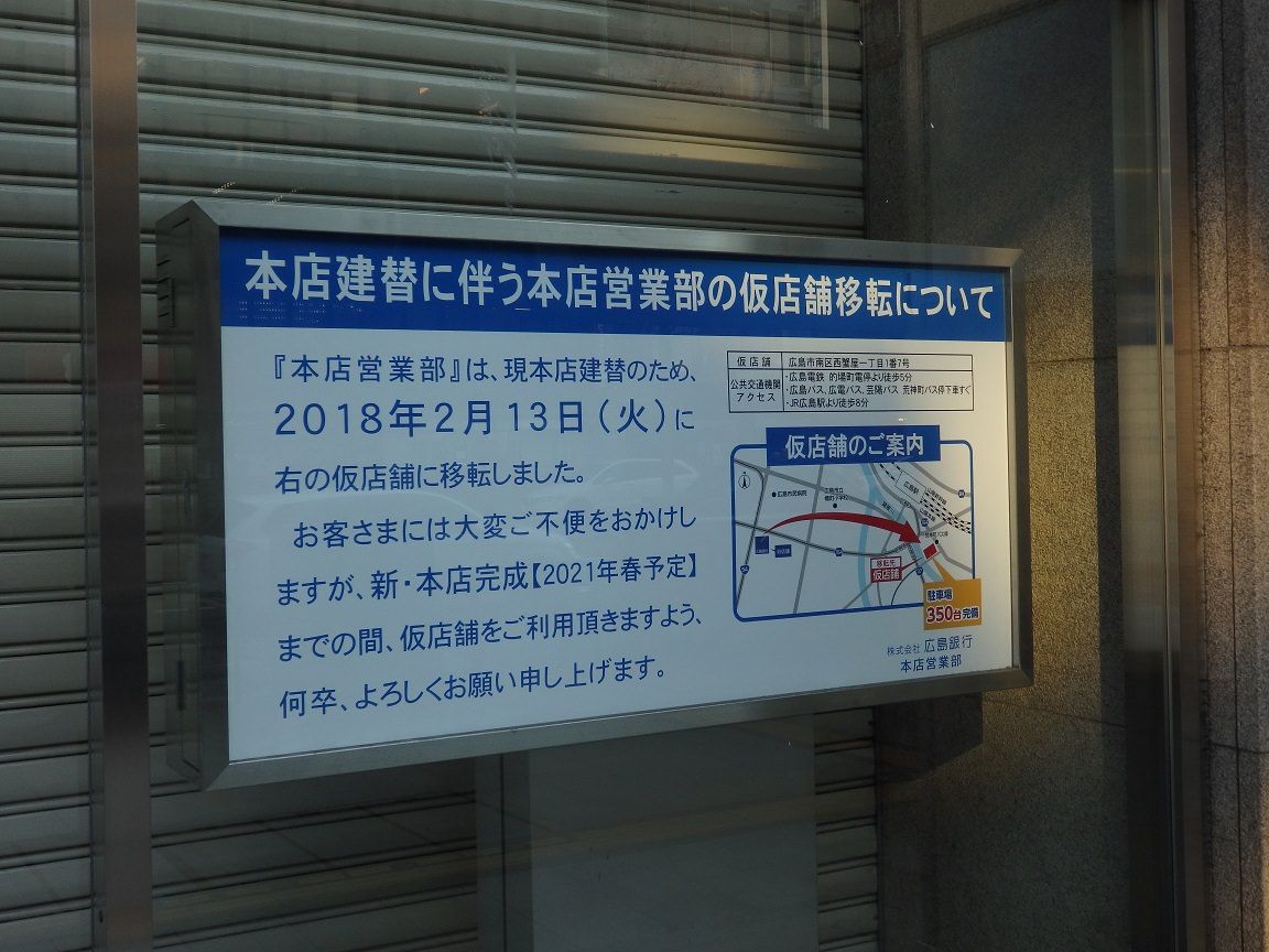 昭和42年に作られ52年間に及び広島紙屋町の交差点で営業してきた広島銀行本店が老朽化の為建替えをすることに。