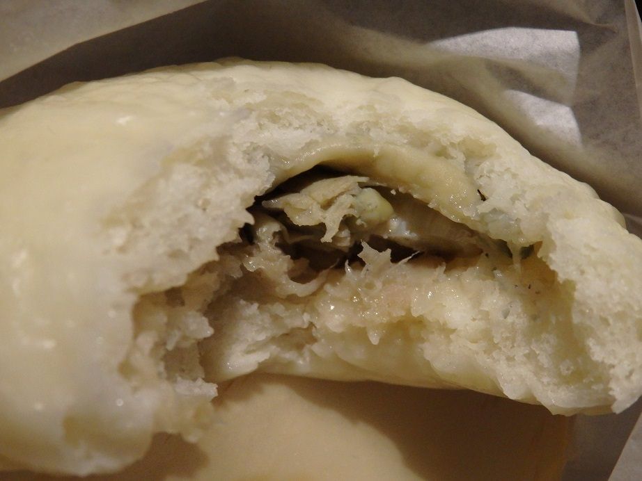 中には肉まんの豚肉の餡の中に小振りの牡蠣が一つもしくは二つ入ってました。