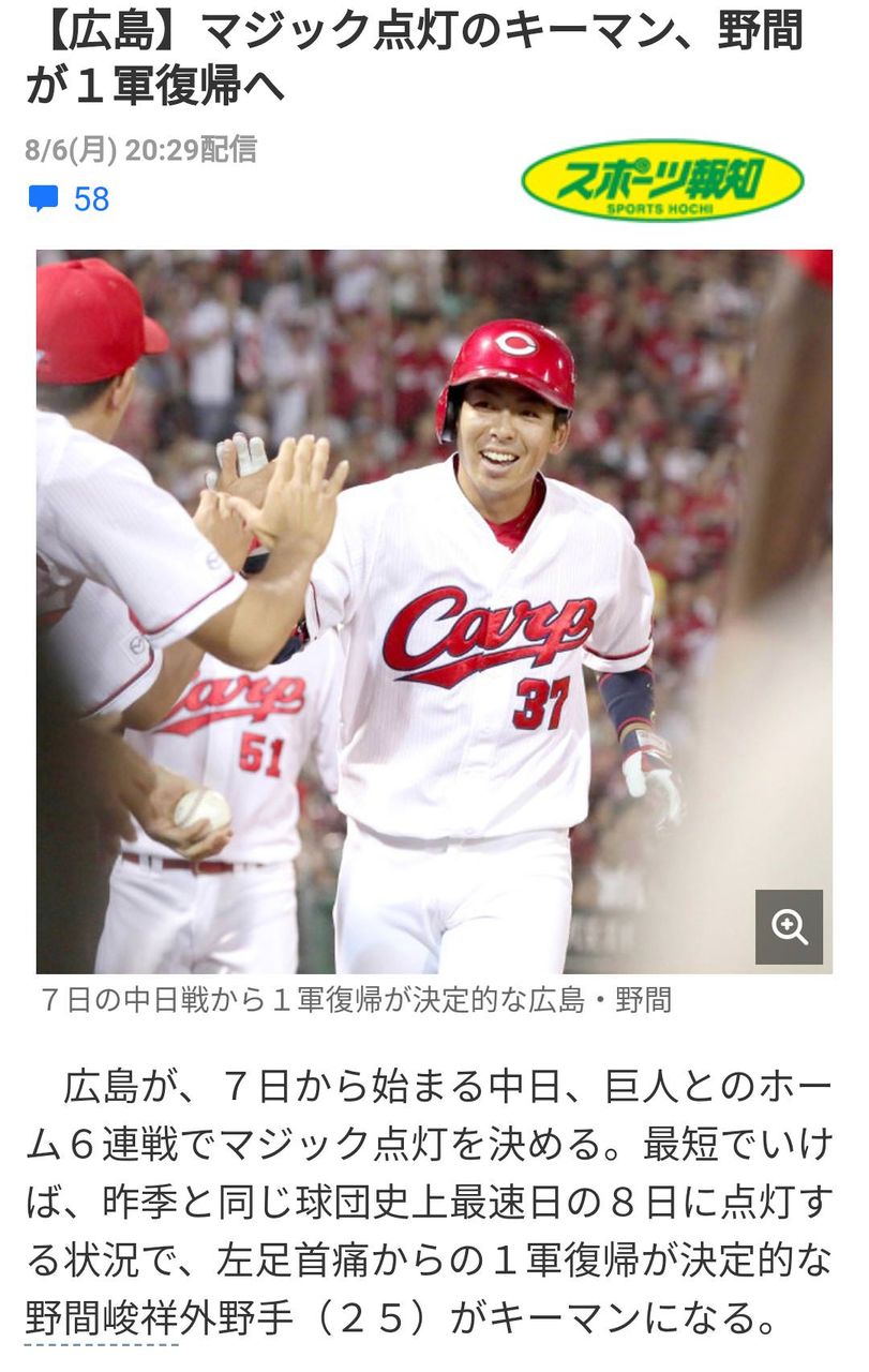 野間は率もいいけど今年はホームランも出てるのがいい