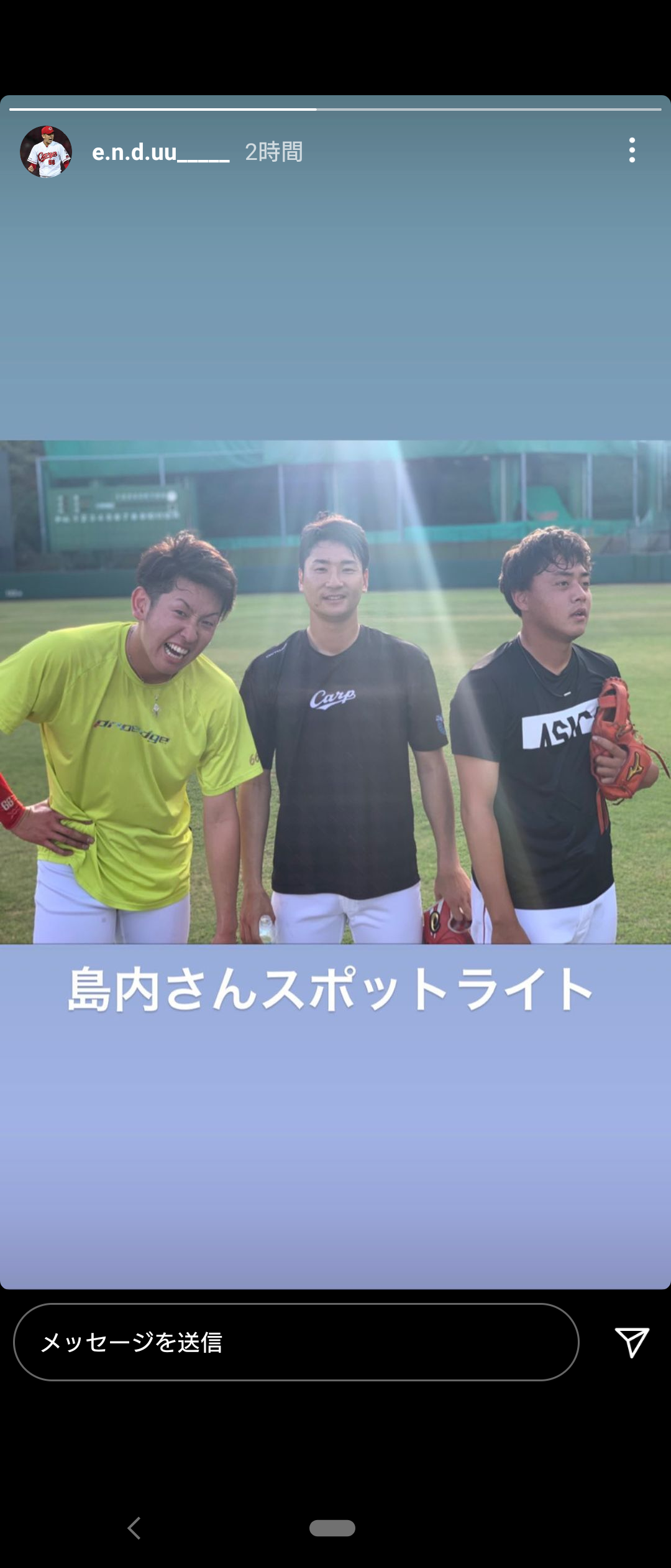 島内投手にたまたま光が差し込んで、表彰式みたいな写真になりました( ◠‿◠ )笑