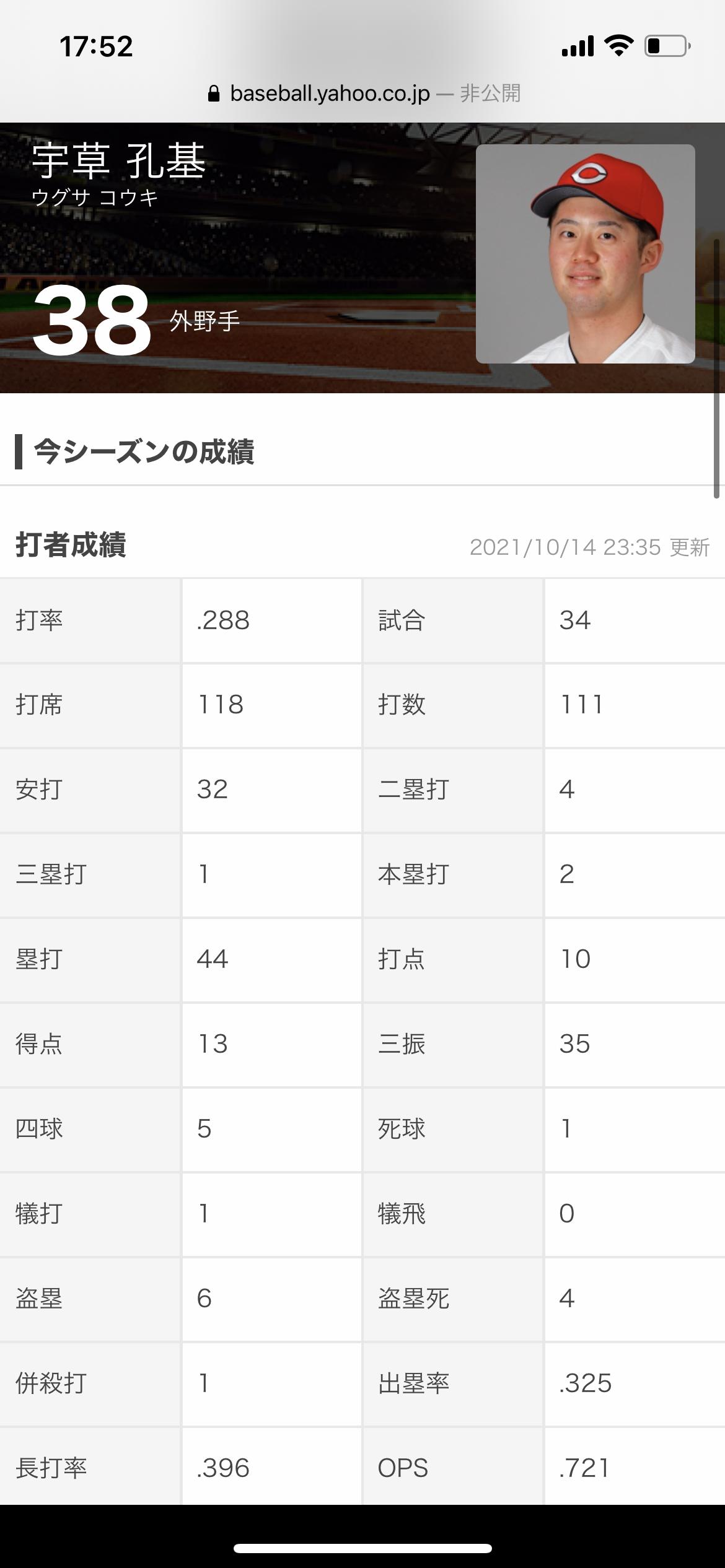 そもそも宇草は守備が見れるようになっただけでとりあえず合格やろ今年は