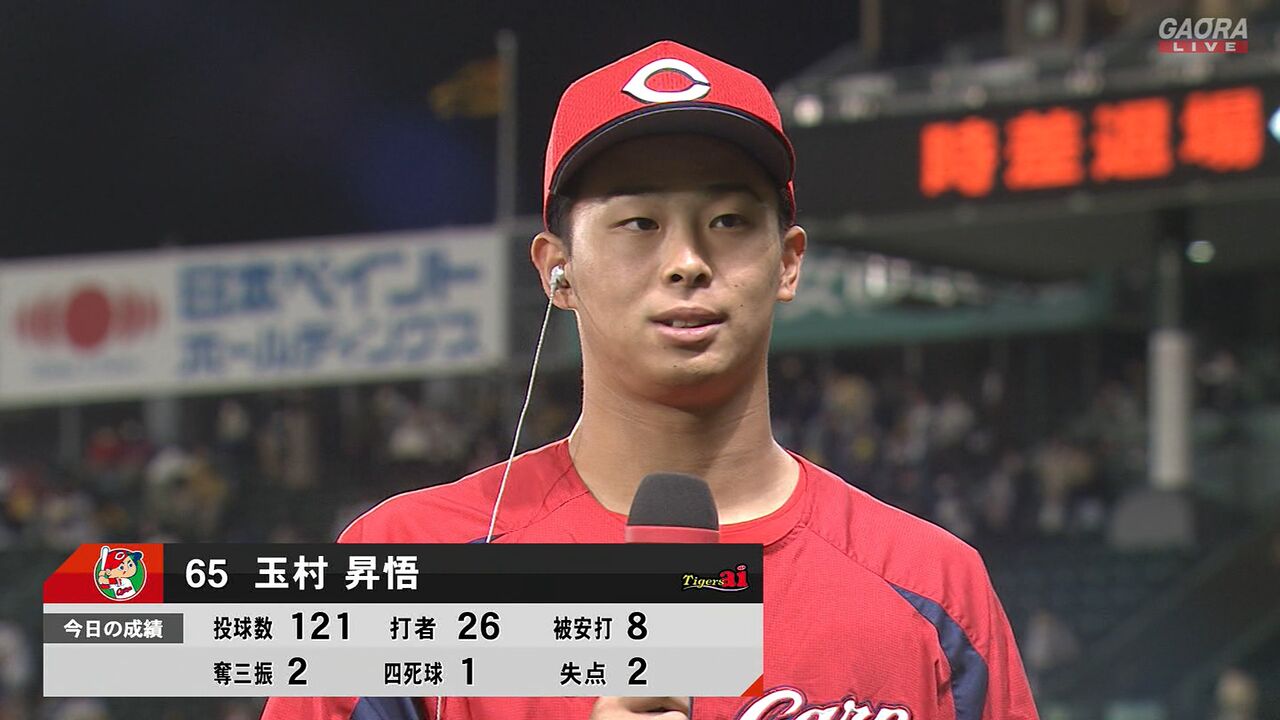 玉村6回1/3 2失点4勝目、栗林35S!!