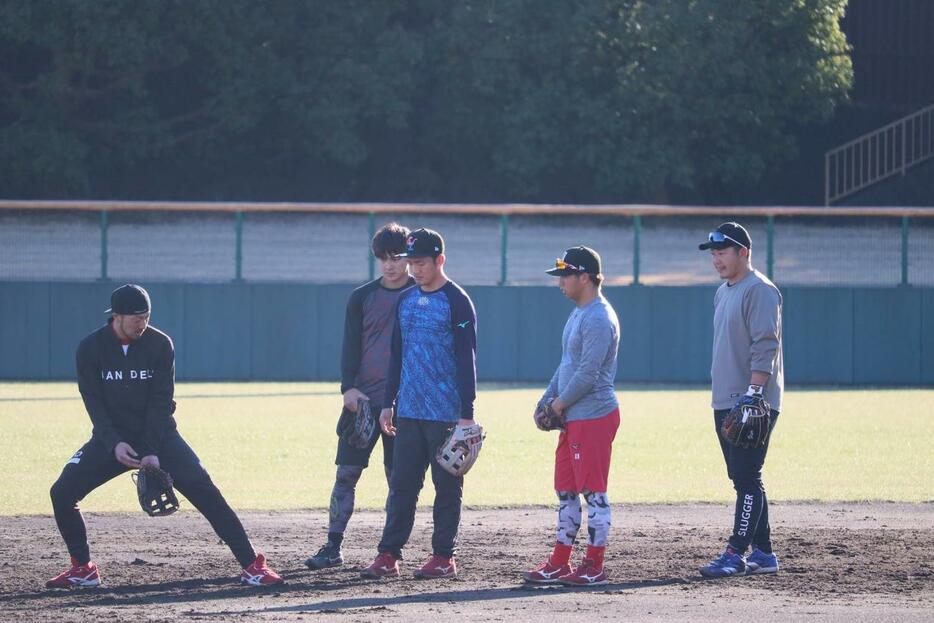 広島菊池涼介内野手が静岡市清水庵原(いはら)球場での自主トレを公開した。広島の羽月、矢野に、常連の中日三ツ俣、さらに今年から阪神熊谷も加わった。若手に交じり、3月で32歳となる名手は1月から動きが軽快だ。「何か少しでも伝えられたら」。9年連続ゴールデングラブ賞のノックに熱視線を送る4選手に、ときに身ぶり手ぶり手本を見せながら指導する姿もあった。