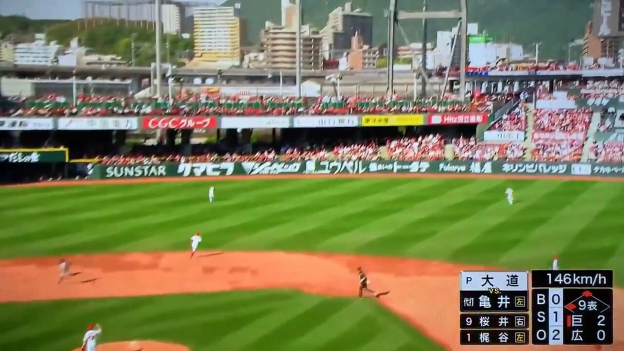 二回。プロ初スタメンの #正随優弥 選手のヒットの後、打率3割を超える #小園海斗 選手がバント成功。1死二、三塁としましたが、あと一本が出ません。0-0。#carp